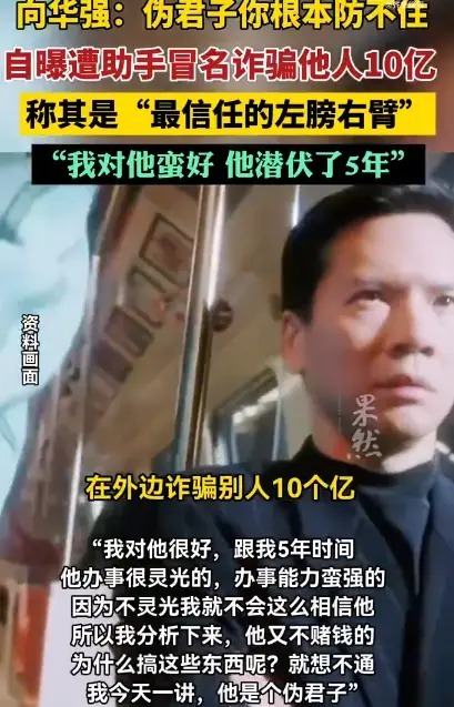 近日,向华强在社交平台发布了一则视频并配文:曾经我的左膀右臂,成了伪君子的教科书。
