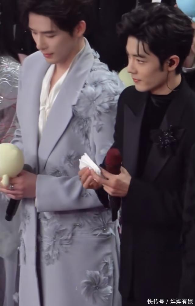 值得一提的是,在合唱环节,王安宇的话筒突然没声音,肖战看到后立马就递上了自己的专属定制话筒,待人接物温润如玉,真的好加分。